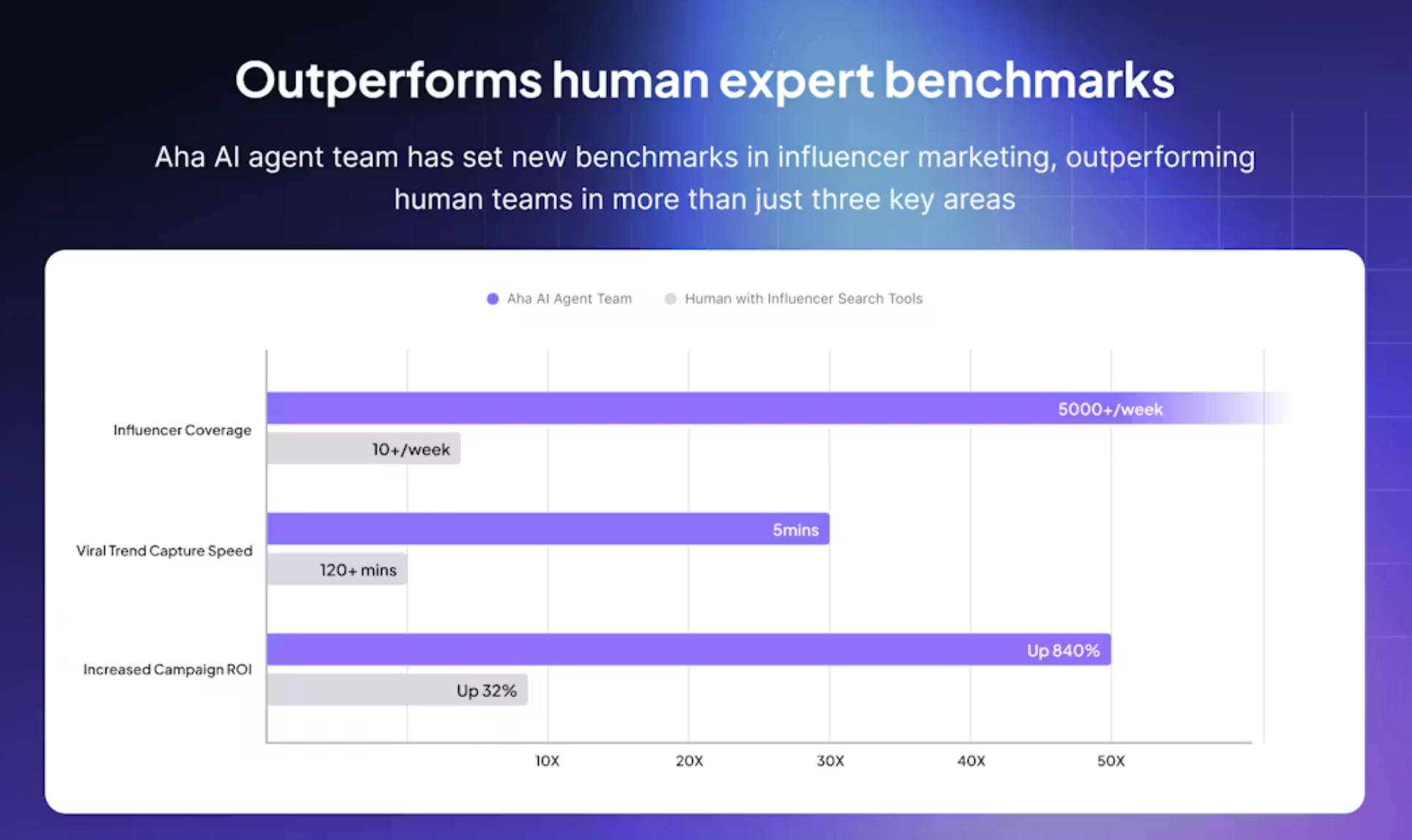 Aha positions itself as your 24/7 AI employee for influencer marketing, built especially for AI companies that want to scale efficiently through creators rather than building a big internal team.
